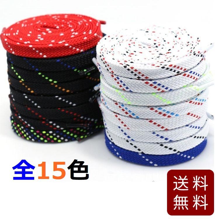 靴紐 シューレース 平タイプ ドットストライプ 全15色 100cm 1足分2本入り 送料無料