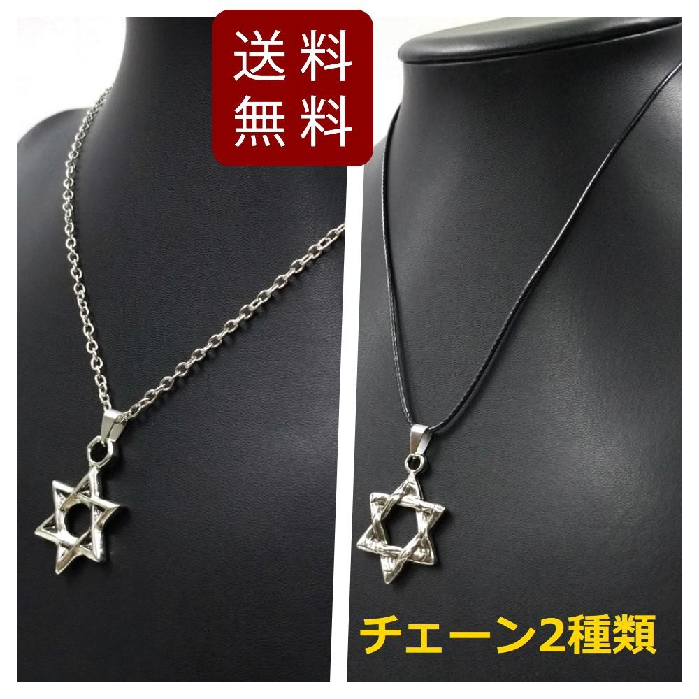 六芒星 ダビデの星 ネックレス ペンダント ステンレス&PUレザー 2種類 シルバーカラー 2.5cmX3cm 送料無料