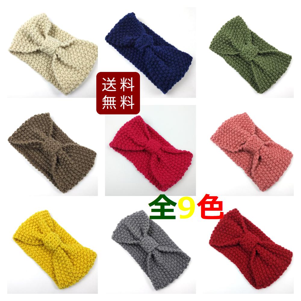 ヘアバンド ニット ヘアターバン リボン 幅広 全9色 送料無料