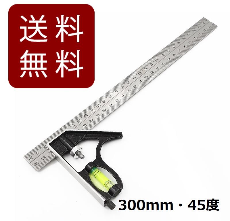 本格派水平器付きスライド定規 角度定規 300mm 金属 メタル ステンレス 送料無料
