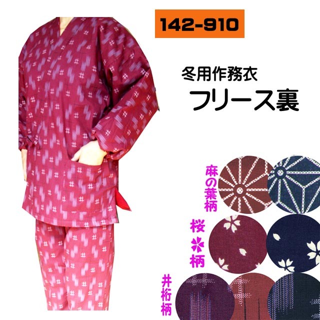 142-910k【期間限定】フリース裏 作務衣 M L LL 女性用 レディース 冬物 大きいサイズ さむえ 婦人 ちゃんちゃんこ どてら 部屋着 ルームウェア 贈り物