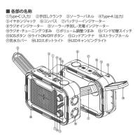 定格入力(蓄電):Type-C:5V=2.1A、ソーラー:5V=16-18mA、手回し:5V=160mA<br>