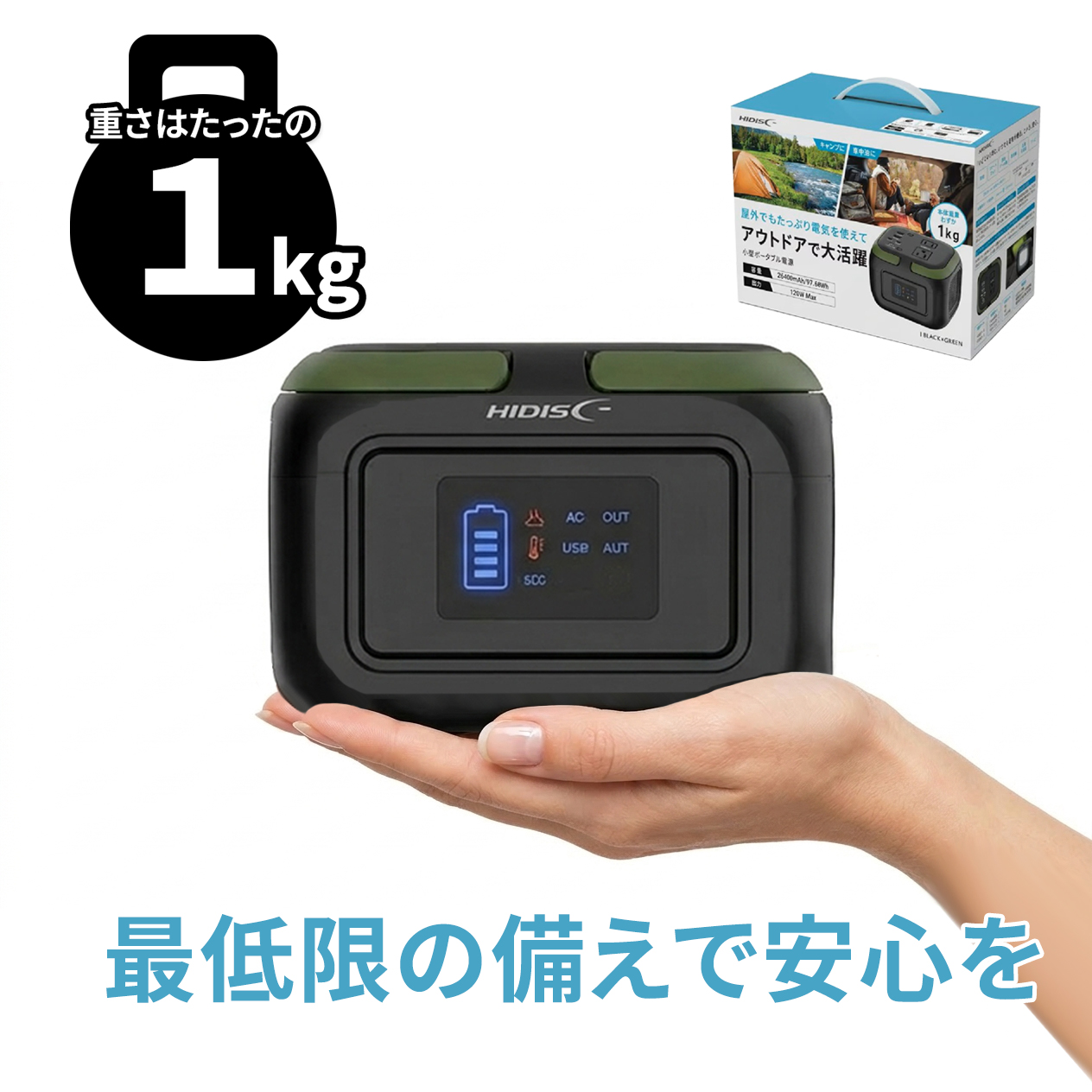 日常の安心から非常時の備えまで、1台でしっかりと対応できるHIDISCの小型ポータブル電源。