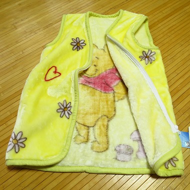 プーさんのスリーパーです。なめらか ふわふわ毛並みの軽くてあたたかいスリーパーです。寝返りを打っても、めくれないので、体を冷やすことなく朝まで暖かく眠れます。◎スリーパーにもベストにも使えます◎ポリエステル100%