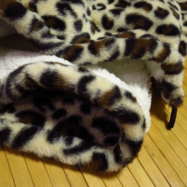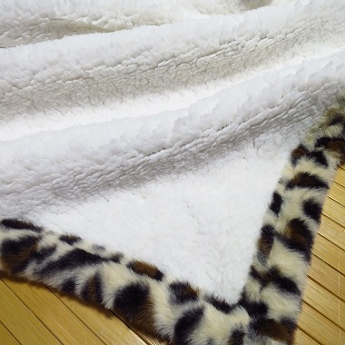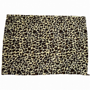 ◎ヒョウ柄のひざ掛け毛布(ブランケット)です。素材はポリエステル100%。