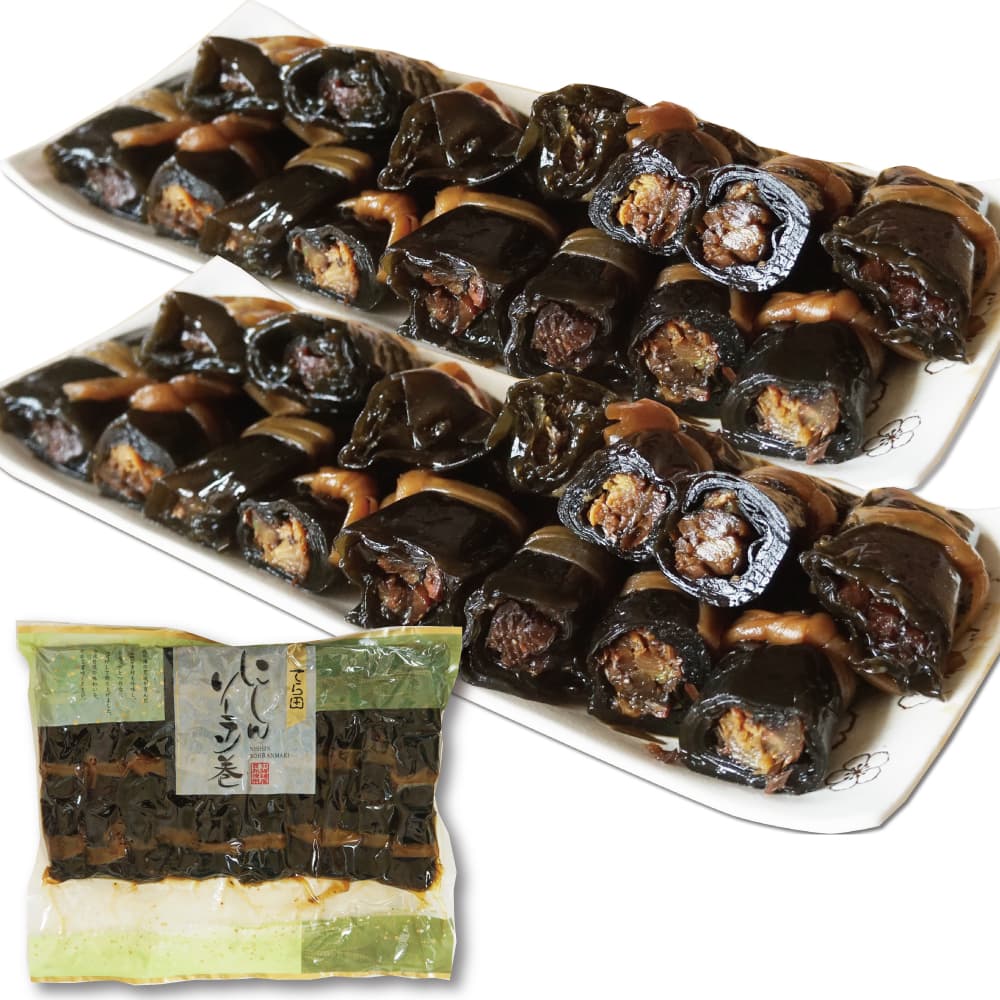 | 商品説明 | 北海道の昆布巻 北の海の荒波が育んだ新鮮な素材を吟味し、ひとつひとつ丹念に味付けして造り上げました。当社自慢の味わいを是非ご賞味ください。 大容量 合計 30本(約1.3kg) にしんソーラン巻北海道の荒波が育んだ良質な素材を吟味し、鮮度の良いにしんを北海道産の昆布で巻きました。こだわりの炊き上げ製法で素材の美味しさを大切にし、丹念に味付けして作り上げた、素材の旨みあふれる昆布巻です。 やわらかく上品な甘みで美味しい 独自の秘伝のタレでじっくり炊き上げ。 あふれ出る昆布の旨みと素材の味わい。 常温保存タイプなので、食べたいときにすぐに食べられます。お酒のおつまみ、お弁当のおかず、ちょっとしたおやつなどにも使用できます。お好きな味をセットにできて、送料も無料で!ぜひこの機会に、北海道の昆布巻をご賞味くださいませ! 栄養成分表示(100g当たり)にしんソーラン巻(当社調べ)