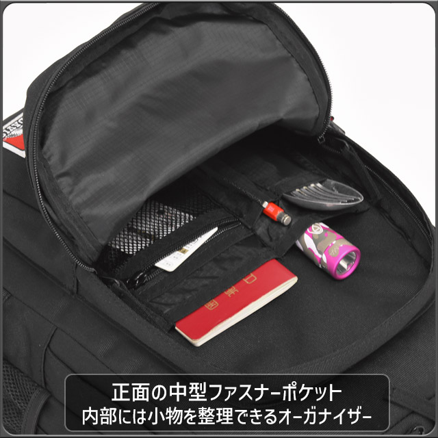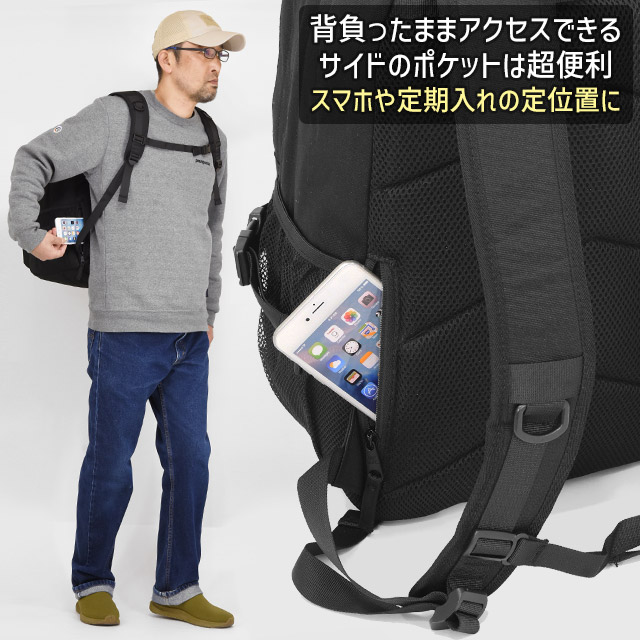 大容量でB4サイズも楽々収納、収納力抜群のリュックサックです。メイン部には、PC収納可能なポケットを装備。フロントポケット内部はオーガナイザーポケット付きで、小物を収納するのに大変便利です。背面のセキュリティポケットは財布やスマホなど貴重品の収納に役立ちます。通勤・通学・通塾・部活・ジムなどにもオススメ。