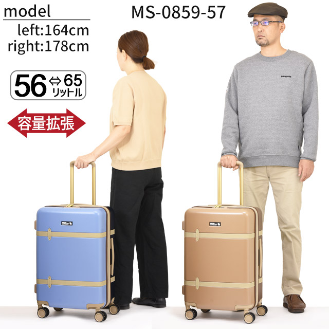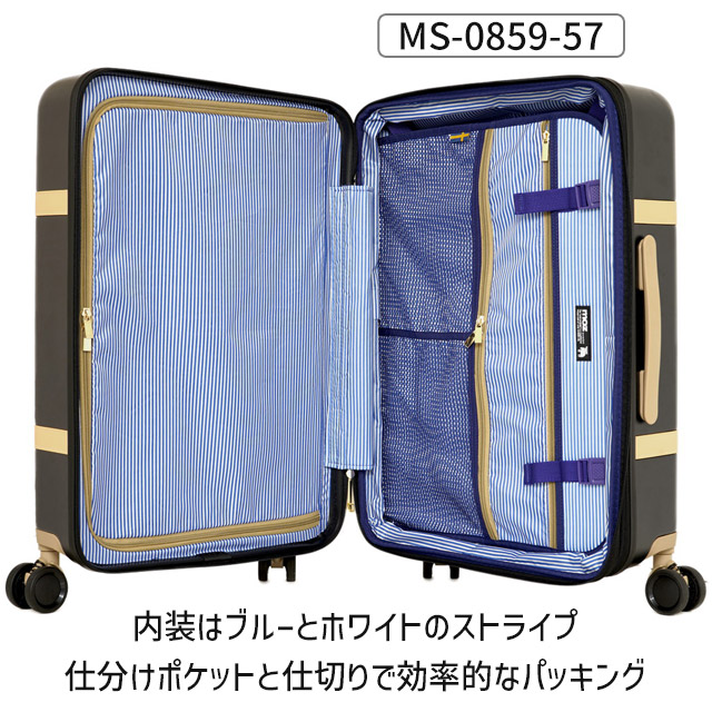 モズ moz スーツケース ハード 4輪 ファスナータイプ (M) 拡張型 57センチ 56〜65リットル 修学旅行 かわいい MZ-0859-57