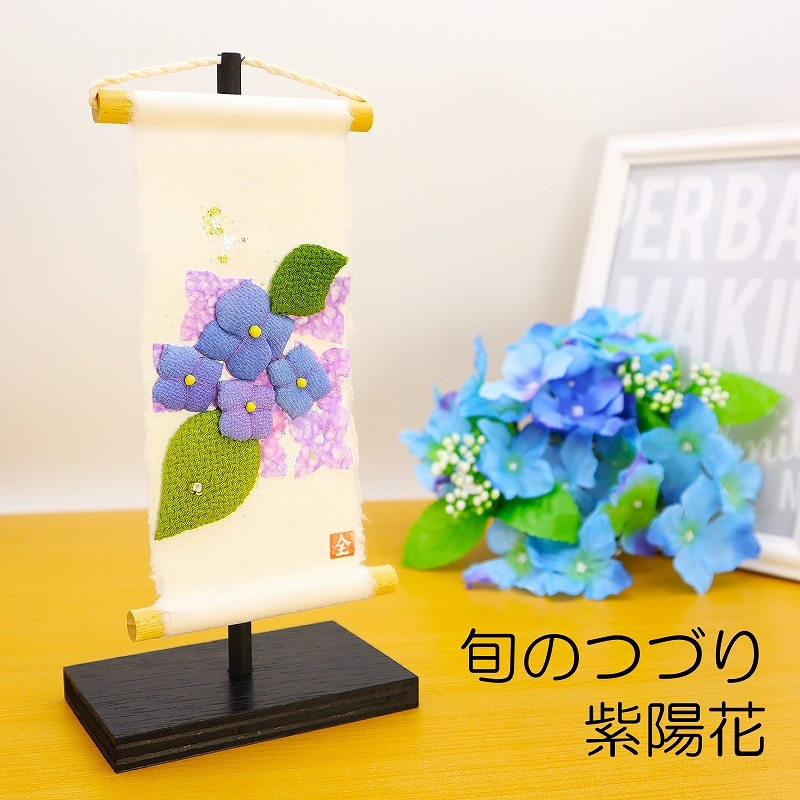 ミニタペストリー タペストリー 和紙 コンパクト ちりめん 小さい 梅雨 / 旬のつづり 紫陽花 / 玄関 受付 おしゃれ 飾り 置物紙すき 手作り ミニ 飾り 人気