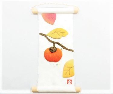 ミニタペストリー 和紙 コンパクト ちりめん 小さい / 旬のつづり 柿 / 紙すき 手作り ミニ 飾り 人気