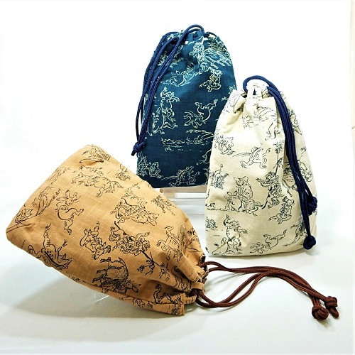 浴衣 巾着 和柄 バッグ メンズ / 信玄袋 鳥獣戯画 / 巾着型 バッグ 和装 着物 男性 和装小物
