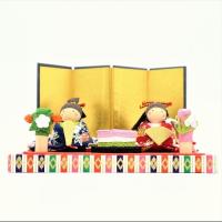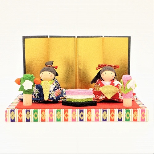ちりめんで作られたお内裏様、お雛様と金屏風がセットになった雛人形です。