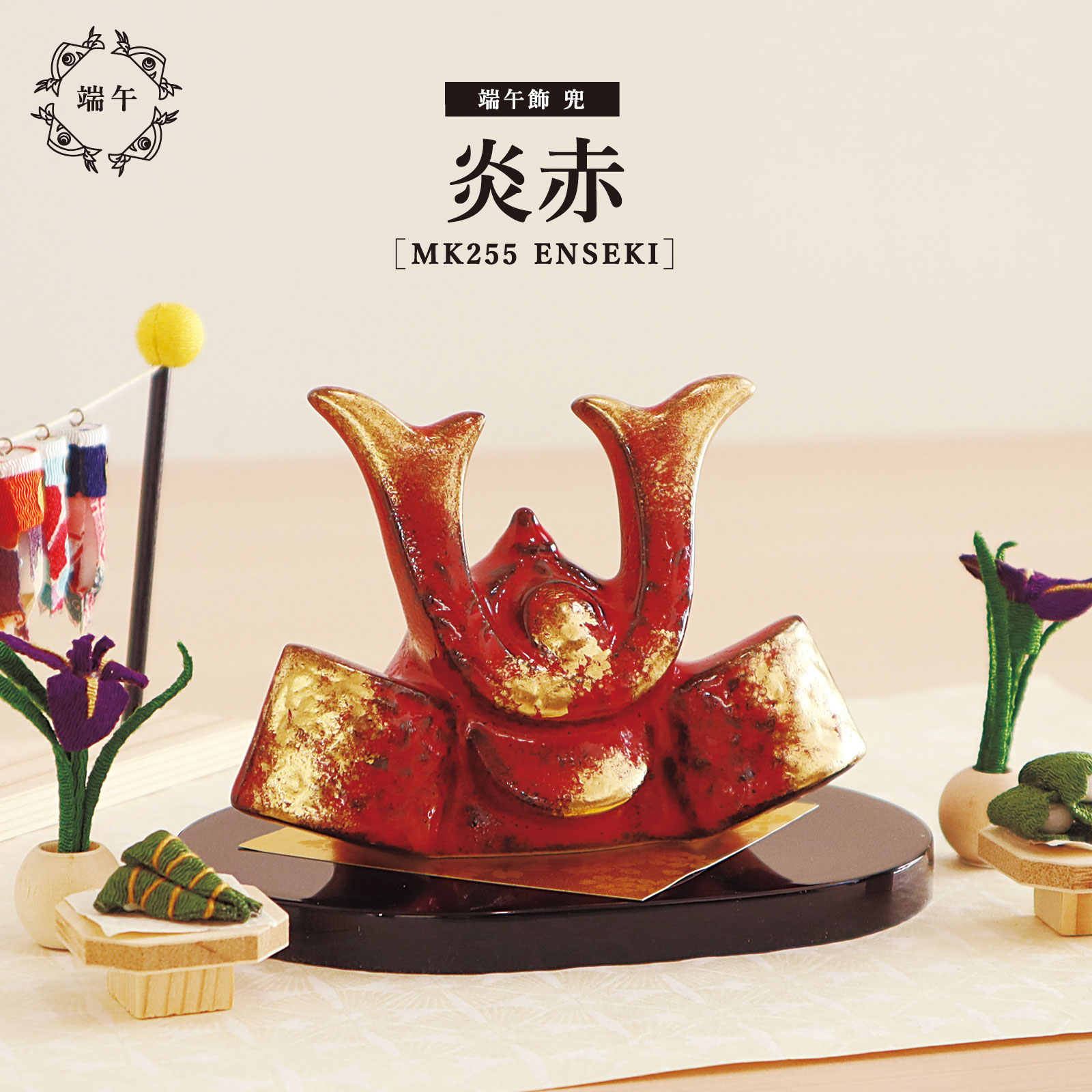 五月人形 コンパクト 兜飾り / 窯変兜(炎赤)MK255 ENSEKI / 端午の節句 ちりめん 初節句 こどもの日 人気 お祝い 贈り物 プレゼント 陶器 小さい 兜