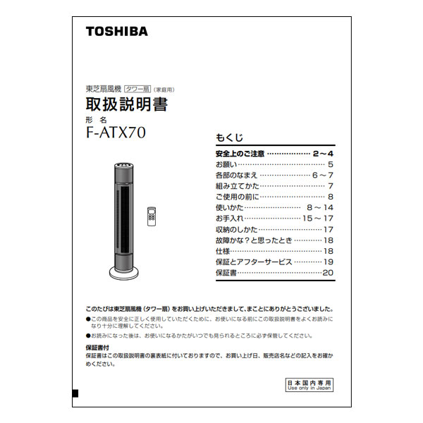 東芝 TOSHIBA 扇風機 取扱説明書 41086613