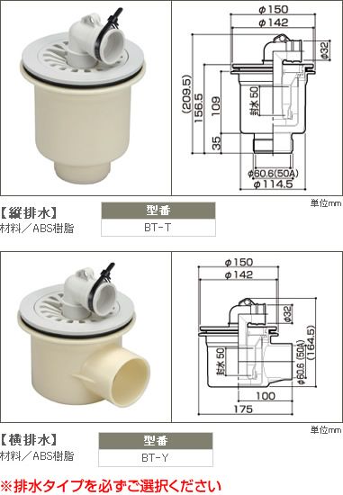 【在庫あり】サヌキ SPG 洗濯機パン用 排水トラップ BT-T (縦) または BT-Y (横) BTT/BTY