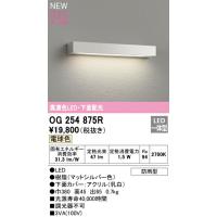 【代引決済・後払い決済不可】 高演色LED・下面配光 OG254875R 電球色 2700K 消費電力1.5W Ra94 ●LED ●脂(マットシルバー色)●下面カバー:アクリル(乳白) ●巾380 高45 出65 0.7kg ■光源寿命40,000時間 ■調光器不可 防雨型 その他