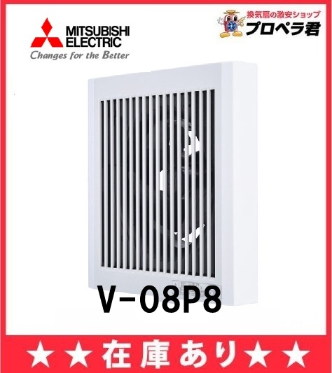 【在庫あり】 V-08P8 トイレ 換気扇 パイプ用ファン 排気用 電源プラグ付き 三菱 角型格子パネル【純正品】