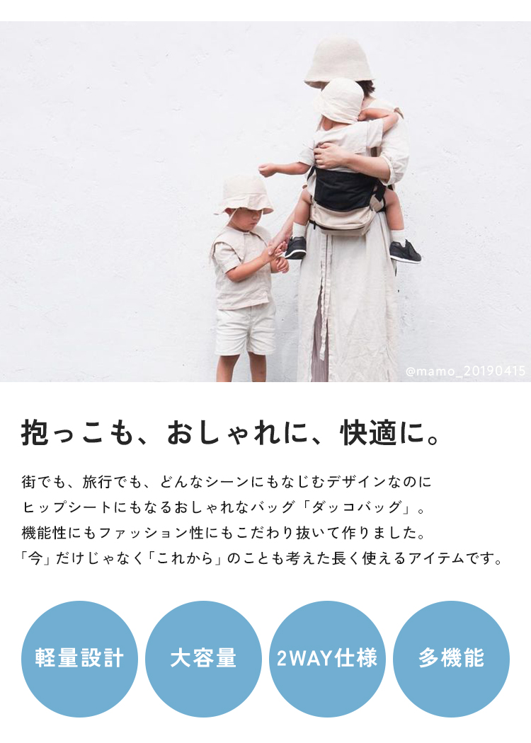 | 商品名 | 抱っこをサポートするバック【ダッコバック】 ショルダーバック×ヒップヒート |