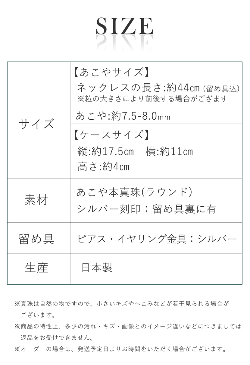 あこや真珠 2点セット パール ネックレス イヤリングorピアス 7.5-8.0mm 高級 真珠 白 ホワイト フォーマル アクセサリー 冠婚葬祭 セレモニー akoya-pearl