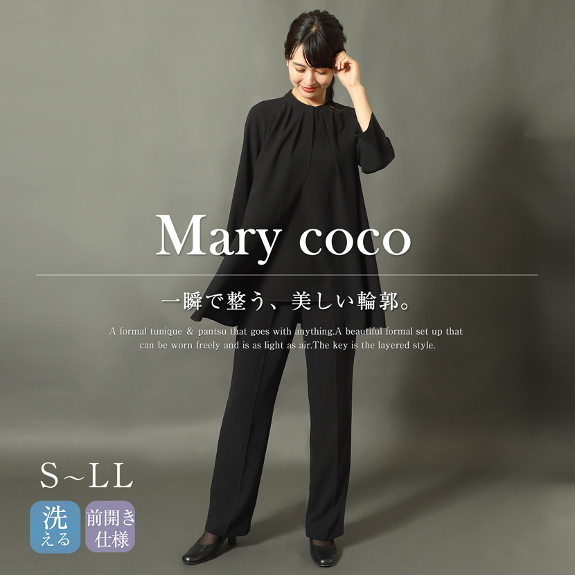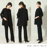 着心地の良さも美しさも叶える。重ね着風チュニック&ストレートパンツの、着回しの効くブラックフォーマル2点セットです。
