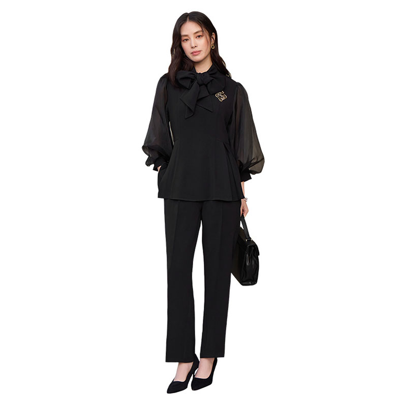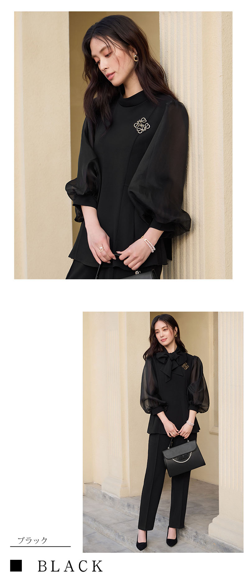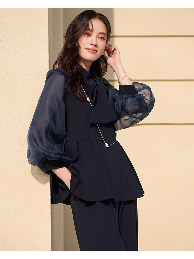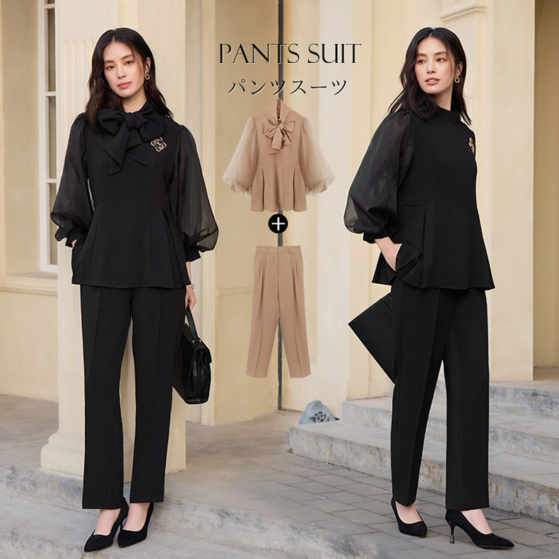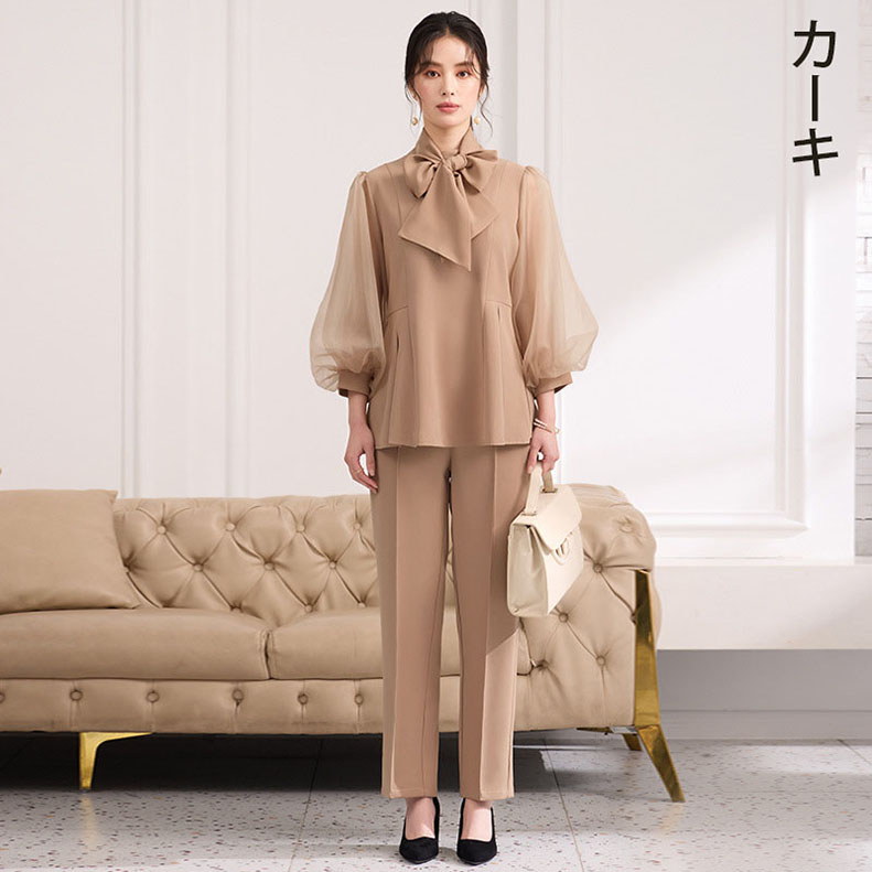 入学式 卒業式 リボンセットアップ レディース ペプラム パンツ セレモニースーツ レース 母親 結婚式 七五三 フォーマル 大きいサイズ 体型カバー おしゃれ
