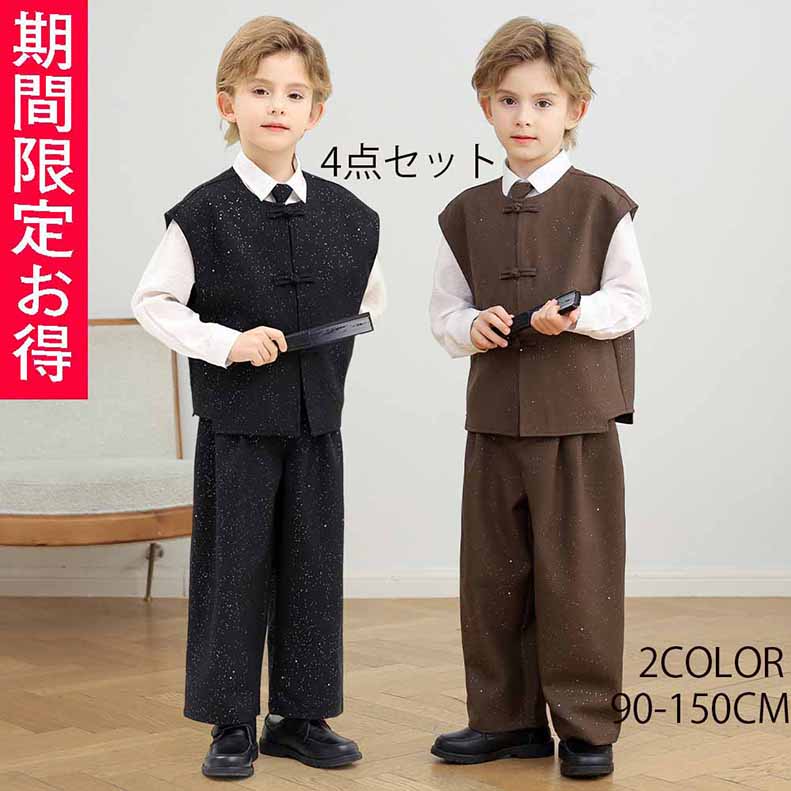 フォーマルスーツ 4点セット 男の子 おしゃれ タキシード 子供服 キッズ 入学式 卒業式 卒園式 お受験 発表会 結婚式 長袖 パンツ 中国風セットアップ