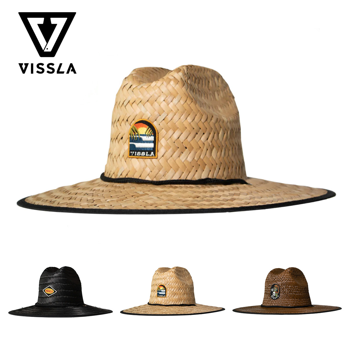 ヴィスラ ハット 帽子 VISSLA アウトサイドセッツ ライフガードハット ストローハット 麦わら帽子 刺繍ワッペン ブランドロゴ スウェットバンド付き BLK TAN TEK