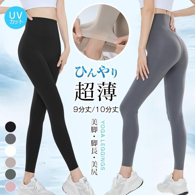 ヨガウェア 9分丈/10分丈クールレギンス 接触冷感 ひんやり 涼しい スパッツ ハイウエスト 日焼け対策 ペチパンツ シルキー レイヤード インナー