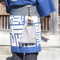 腰下げ巾着 01 刺し子生地 白黒 巾着 祭用品 祭り袋 小物入れ スマホ入れ 粋 根付 江戸打紐 和装