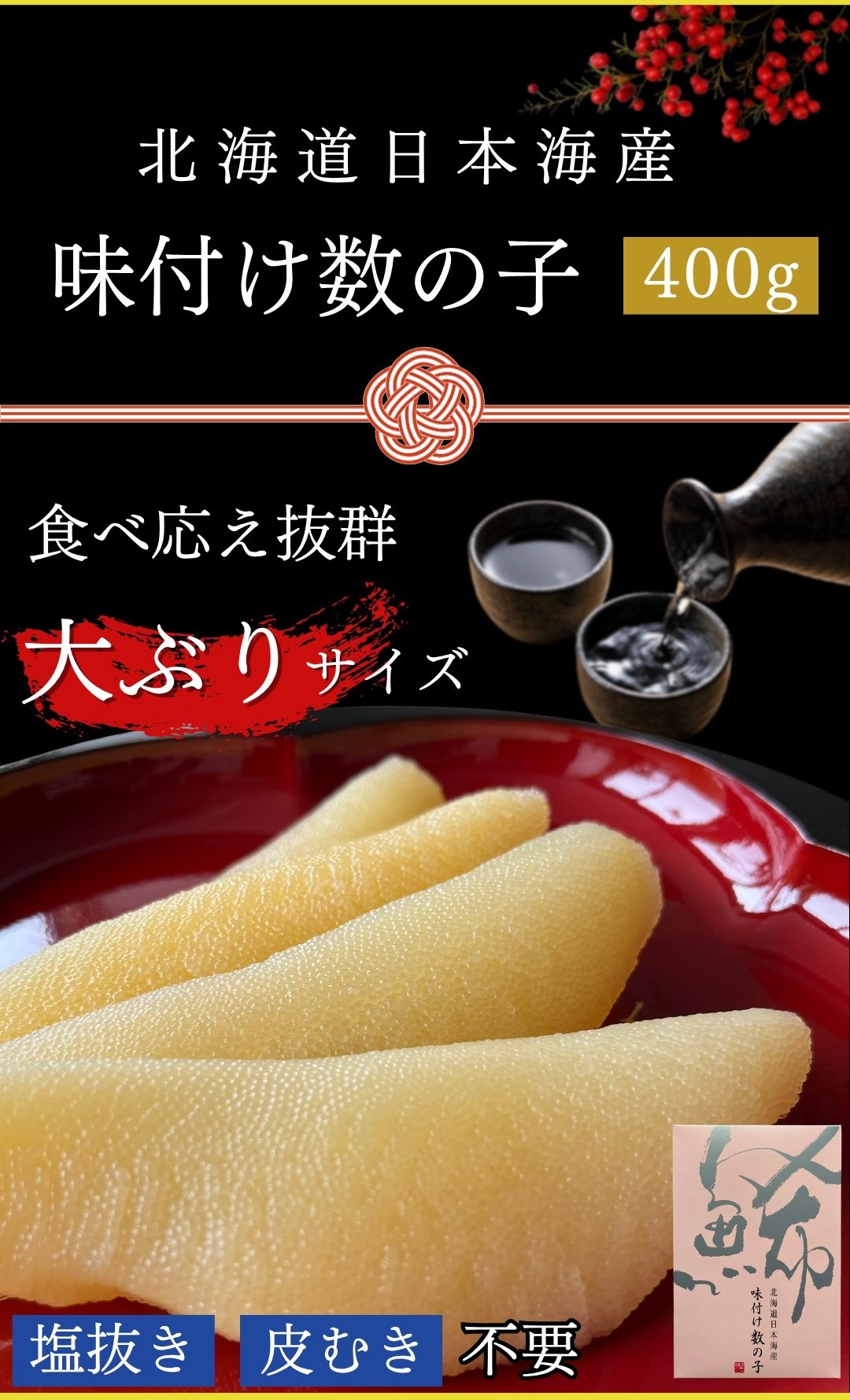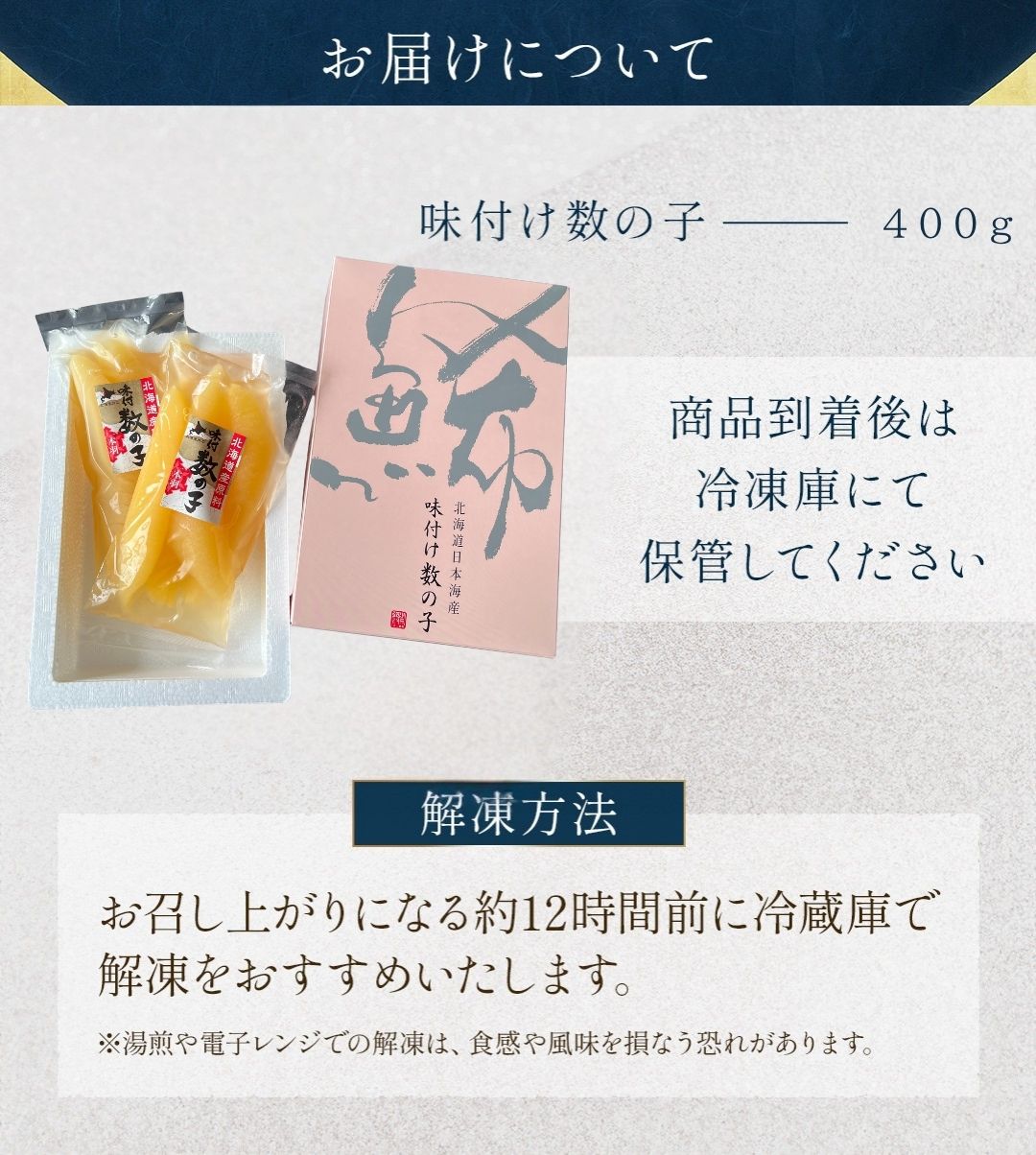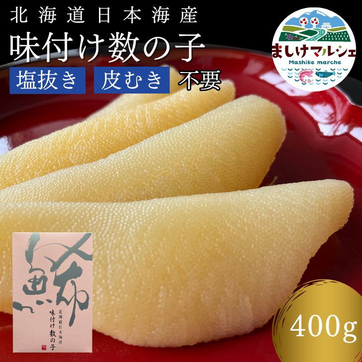 最高級 北海道 日本海産 味付数の子 400g (200g×2入) 送料無料 味付け 贈答用 自宅用 ギフト ポリポリ 食感 歯ごたえ 御歳暮 冷凍