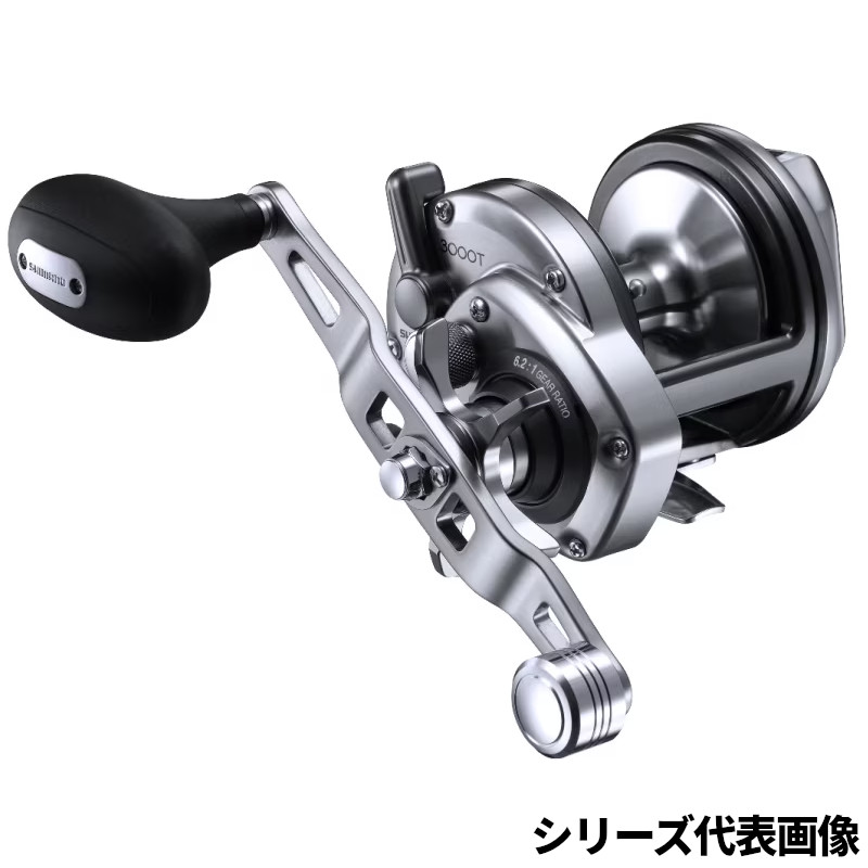 シマノ 【4000T】離島での大判やクチジロなど夢の1枚へ挑むために、太いラインを十分にストックできるキャパシティを備えました。 ●サイズ:4000T ●自重:730g ●ソルト対応/淡水専用:ソルト対応 ●ギヤ比:6.2 ●ベアリング数(本体):3 ●ベアリング数(ローラー部):1 ●ドラグ力:最大 12kg ●糸巻量1:ナイロン(号-m) 18-200、20-170、24-140 ●糸巻量2:PE(号-m) 10-300 ●巻上長(ハンドル1回転あたりの長さ):最大116cm ●スプール寸法:スプール径/幅[mm]59.5/52 ●ハンドル長さ:75mm ●夢屋ハンドルノブタイプ:B ●夢屋ハンドルタイプ:BH-6 ●代表対象魚:イシダイ(石鯛)|永く愛されてきた質実剛健の実戦派石鯛リール・スピードマスター石鯛がドラグ力の大幅な向上と遠心ブレーキを搭載してモデルチェンジを果たしました。新設計のカウンターウェイト付きのパワーバランスハンドルは手を離した位置でぴたりと止まり、無意識下での仕掛けの移動を防止.. MST-02-02-09 SRS-234969363044365