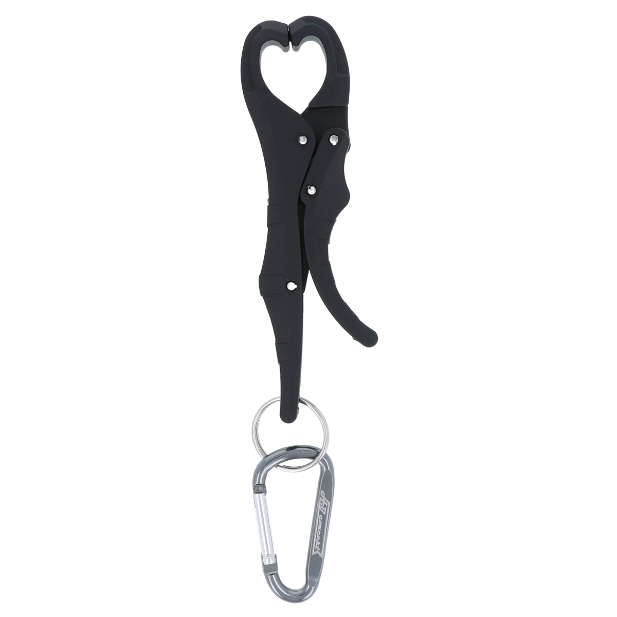 手を汚さず魚がつかめる便利な小型フィッシュグリップ。ロック式開閉レバーで魚の口をしっかりとホールド。着脱が容易なカラビナ付きでゲームベストやウエストバッグ、ベルトループなどに簡単に取り付け可能。