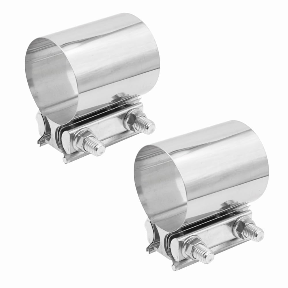 AotoKoop 3 Inch Exhaust Clamp, 3" Butt Joint Band Clamp Sleeve Connector Stainless Steel for Mufflers, Pipe, Catalytic Converters (2 pcs, 3 inch)
