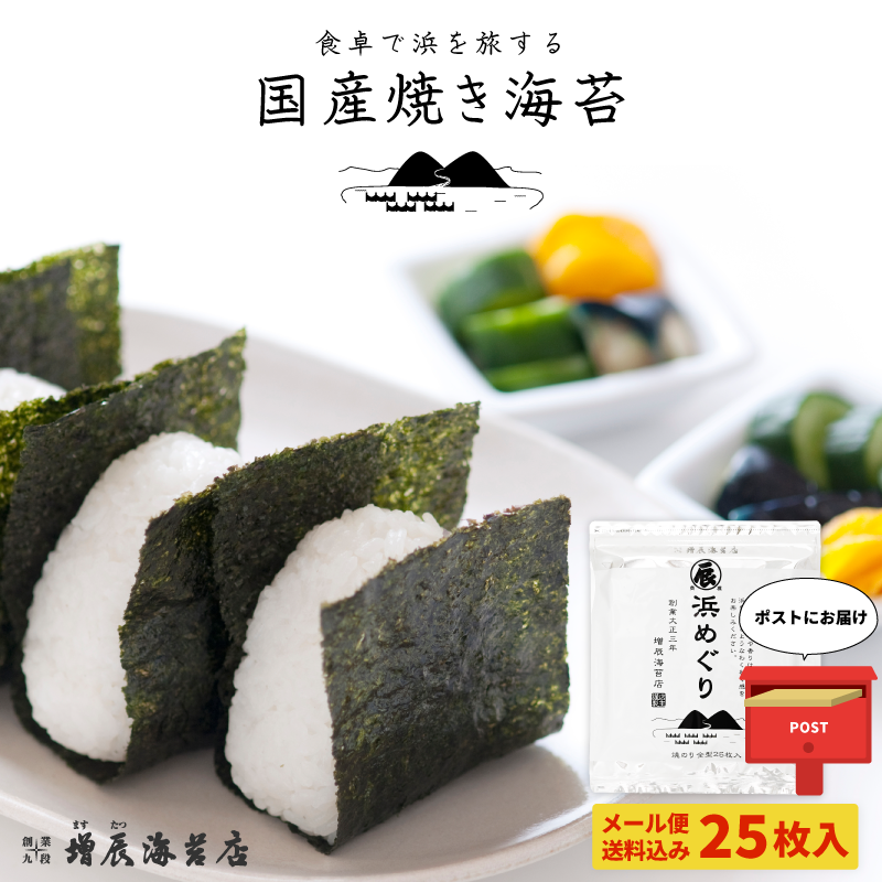 焼き海苔 国産 全型25枚 浜めぐり 国内産 焼のり おにぎり 手巻き寿司 おにぎらず メール便 送料込み 増辰海苔店
