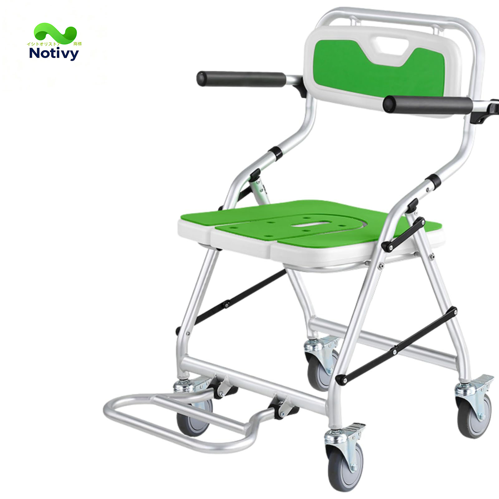 【多目的チェア】:シャワーチェア/椅子/車椅子として最適、快適なシャワーチェア。下の車輪にはブレーキ機能があり、シャワーを浴びる時はブレーキが閉じ、運転時にはブレーキが開きます。ただし、ドアや通路の幅は56cm以上でなければならず、車輪付きのトイレチェアは屋外での使用には適していません。