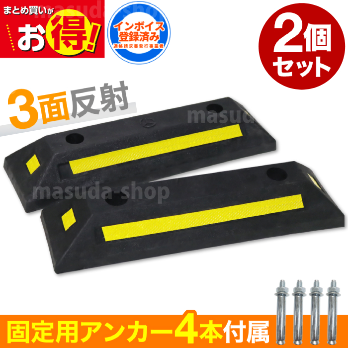 車止めブロック パーキングブロック 車止め ブロック 駐車ブロック 2個組 駐車場 ガレージ 車庫 反射板付き ゴム製 強化ゴム プラスチック製