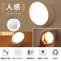 人感センサーライト 屋内 LED 360度 玄関 トイレ マグネット 取り外し 電池式 丸型 円型 360° センサーライト 電球 人感 センサー ライト 電球色 照明 懐中電灯