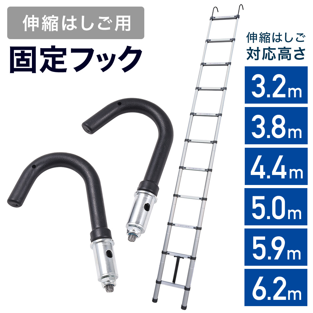 伸縮はしご用 フック 2個セット フックのみ 単品 はしご 梯子 固定フック 固定具 はしご固定フック 安全 壁 高所作業 安定 補助 引っ掛け