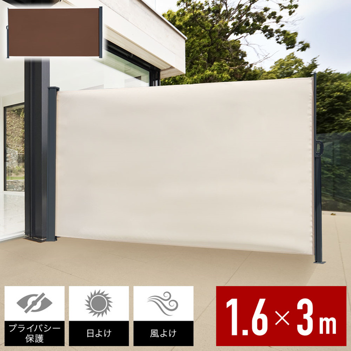 日よけシェード 自立 引き込み サイド オーニング スクリーン パーテーション 目隠し 庭 リビング バルコニー テラス ウッドデッキ 日除け 巻き取り 3m