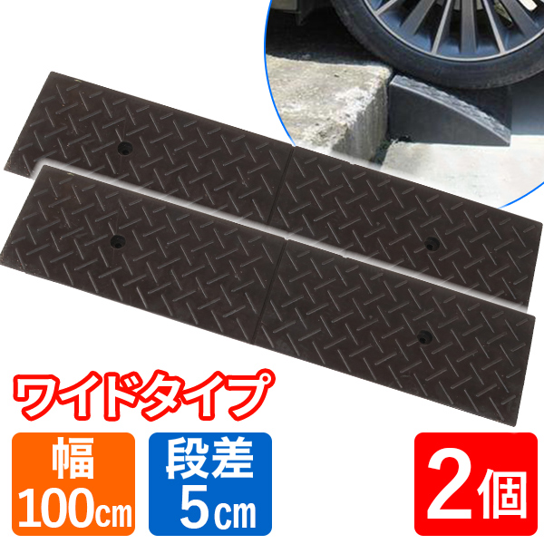 段差プレート 5cm 幅100cm 2個 ゴム製 段差スロープ 段差 ワイド 段差解消スロープ 屋外用 車 駐車場 滑りにくい ステップ 庭 玄関 車椅子 台車 バイク 車庫