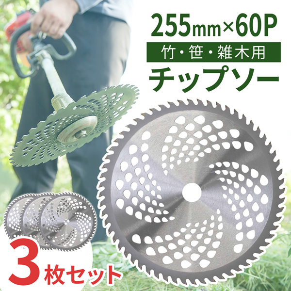 チップソー 替刃 255mm 60枚刃 3枚セット 替え刃 草刈機 草刈り機 草刈り用 チップソー刃 草刈刃 刈払機 刃
