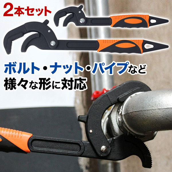 パイプレンチ 2本組 大 小 万能レンチ パイプ 回す 工具 水道 レンチ 水道管 ガス管 フックレンチ 締める 緩める