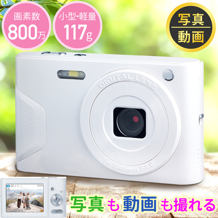 デジタルカメラ 安い 小型 デジカメ ホワイト 白 写真 動画 カメラ 4倍ズーム 800万画素 薄型