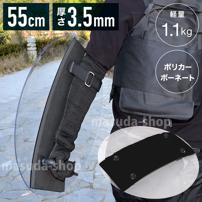 女性やお子様でも比較的扱いやすい小型のポリカーボネート防護盾です。