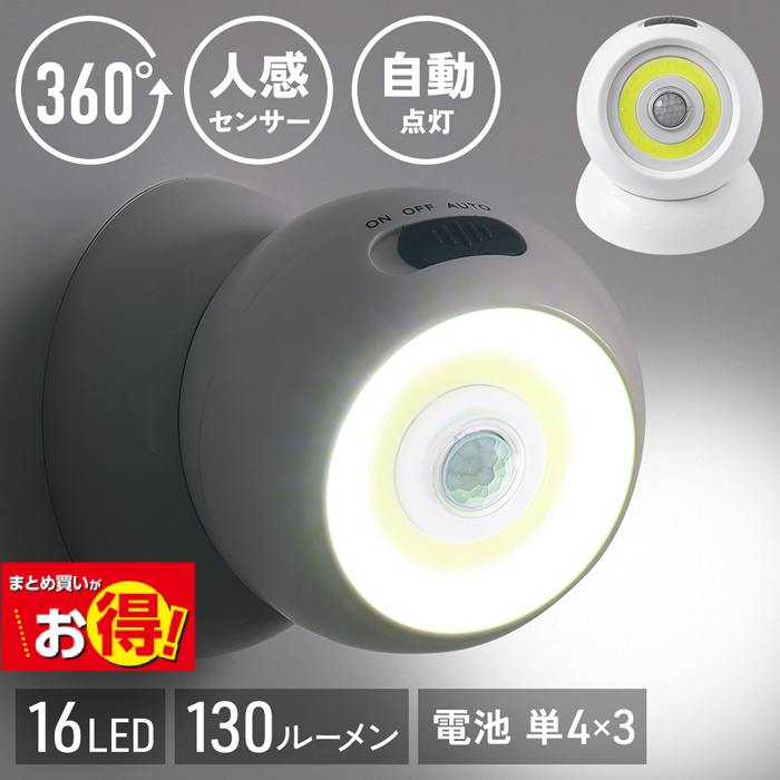 センサーライト 電池式 LED ライト 照明 懐中電灯 マグネット 人感センサー 室内 自動点灯 360度回転