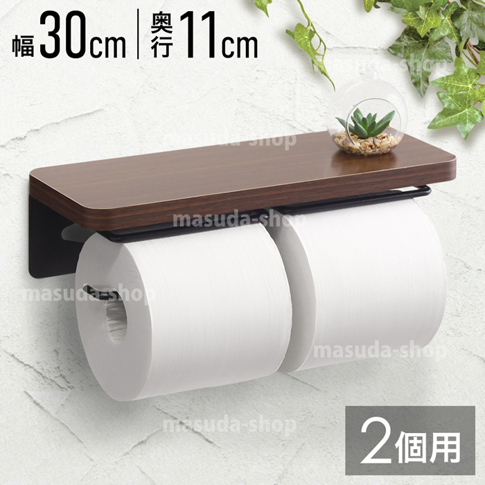 木目調 インテリア 棚付き 北欧 モダン シンプル ペーパーホルダー 2連式