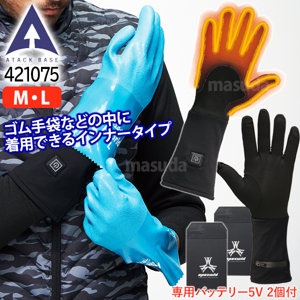 電熱グローブ ヒートインナーグローブ ヒーターグローブ バッテリーセット アタックベース ヒーター手袋 ヒートグローブ 手袋 防寒 421075 APEX WIN