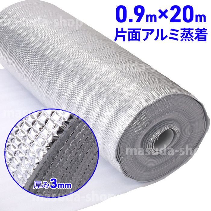 断熱材 アルミ断熱シート 遮熱シート 業務用 20m×0.9m 窓 床 壁 屋根 夏 冬 兼用 片面アルミ蒸着断熱シート 3mm 保冷保温シート