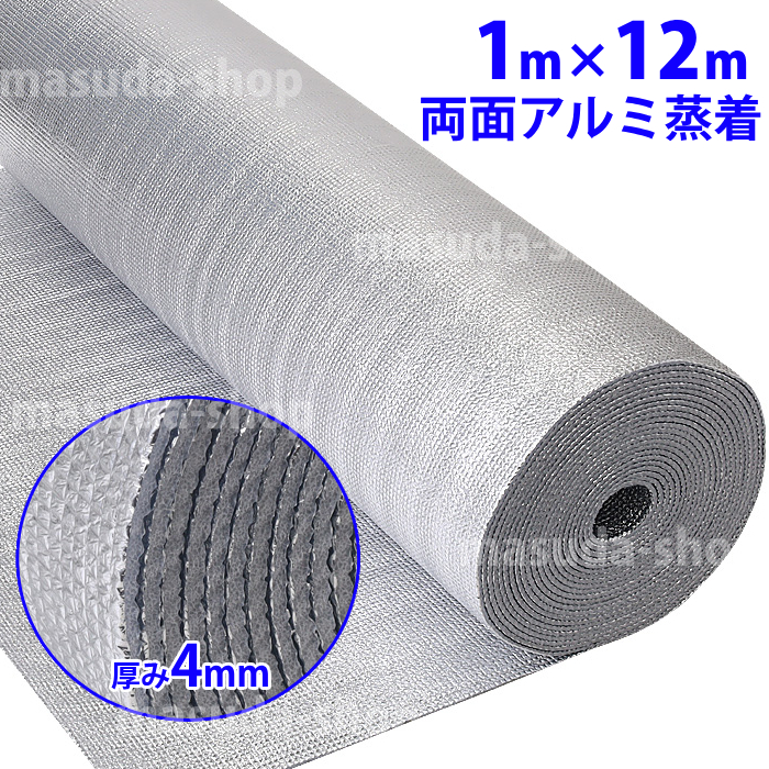 アルミ断熱シート 断熱材 遮熱シート 業務用 12m×1m 窓 床 壁 屋根 夏 冬 兼用 両面アルミ蒸着断熱シート 4mm 保冷保温シート