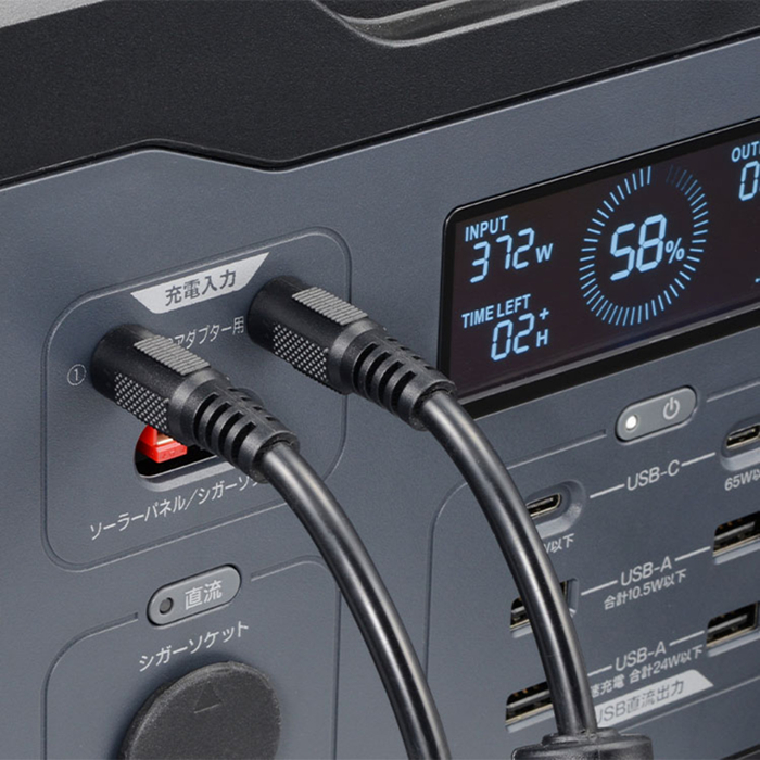 2個使用でポータブル電源DPS600の充電時間を半分に短縮できます(倍速充電ができます)。